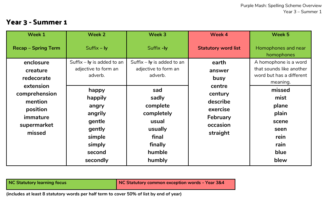 Spelling practice will take place daily at school. Children will be given a range of activities to complete throughout the week to improve their spelling and handwriting skills. Please see the Spelling document below which will show which spelling rule we’ll be looking at each week.