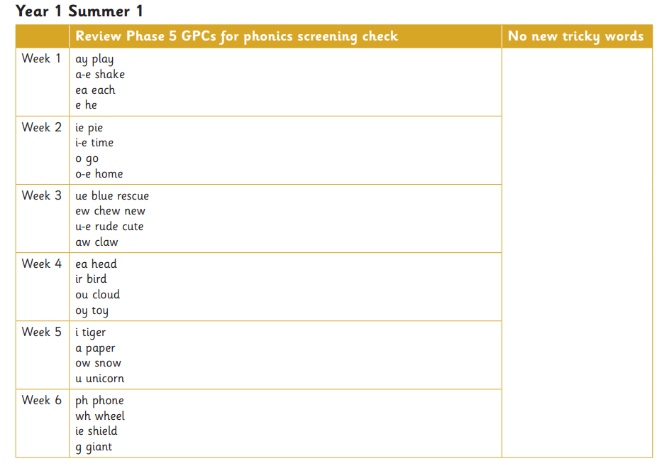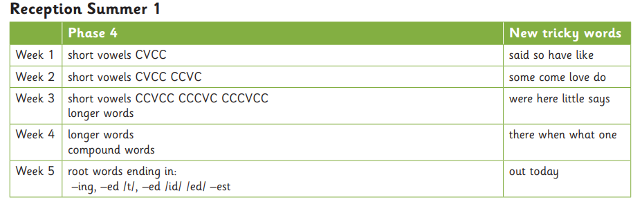 Year 1 - Review of Spring 1 and Tricky Word consolidation.
